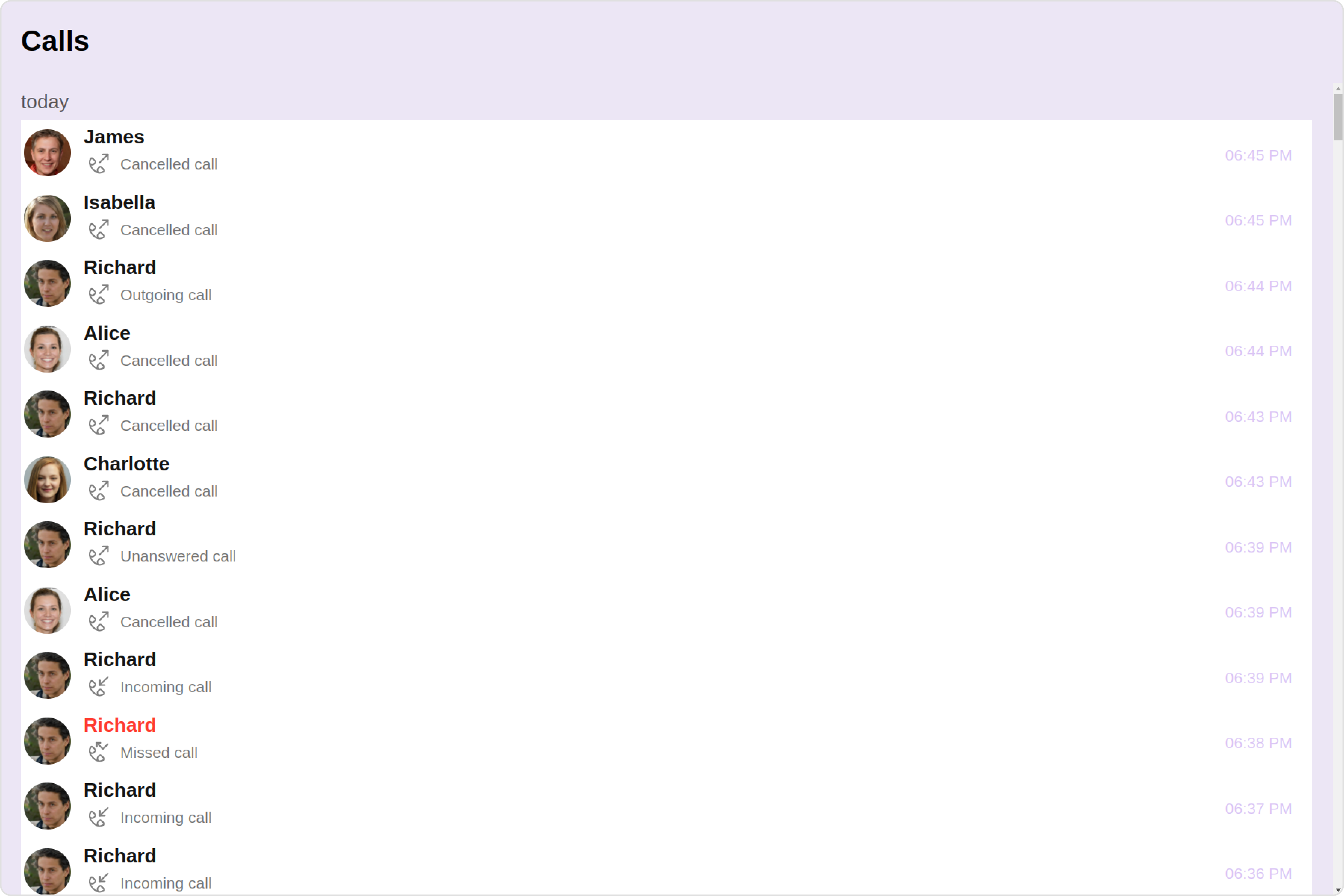 CometChatCallLogs is a Component that shows the list of Call Log available . By default, names are shown for all listed users, along with their avatar if available.