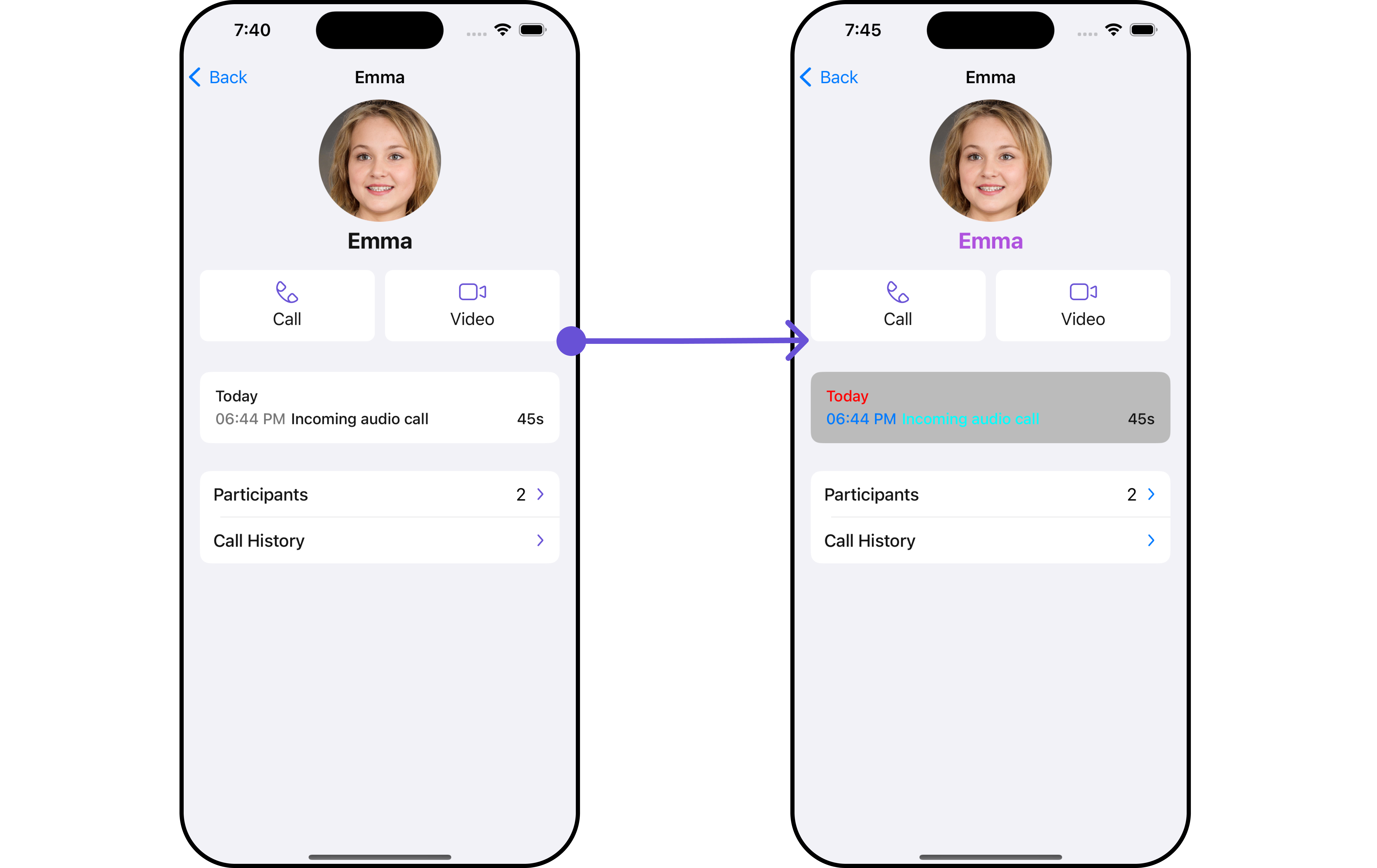 CometChatCallLogDetails is a ViewController, it can be seamlessly presented within your application. To display the details of a CallLog, you simply need to pass the corresponding CallLog object to the CometChatCallLogDetails instance using its setCallLog property. This enables you to efficiently showcase specific call log details within your application’s interface.
